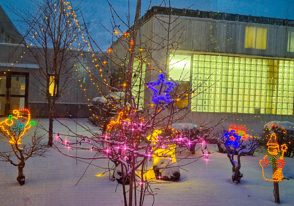 冬の気配が一段と濃くなってきた12月、東八幡平病院の中庭に、今年も色とりどりのイルミネーションが灯りました。 降りしきる雪の中、トナカイや星、サンタクロースの形をした電飾が静かに輝き、白い庭にあたたかな色彩が浮かび上がります。 夕暮れ時、病室の窓辺に腰をかけ、そっと外を眺めていた患者さんがいました。雪の舞う景色の向こうに、小さな光の動物たちがゆっくりと瞬くのを見つけると、思わず「きれいだねぇ」とつぶやかれました。 その横に付添う看護師が「今年も飾ったんですね」と微笑むと、患者さんはしばらく目を細め、言葉を選ぶようにしてひと言。 「こうして見ると…冬も悪くないなあ。」 光の粒が雪に反射し、病室の白い壁にもやさしい色が広がります。その光に包まれるようにして、患者さんの肩がふっとゆるむ瞬間がありました。 私たちは、このささやかな灯りが、入院生活のひとときを少しでも温かく照らすことを願っています。これからも、患者さんの心に寄り添う環境づくりを進めてまいります。 👇の画像をクリックし拡大してごらんください。 |