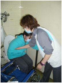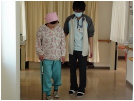 担当療法士による訓練時間の他、病棟の生活時間の中でも積極的に日常生活の練習を看護師などの協力のもとに行っていきます。何らかの介護を要しても自宅退院することを援助していくことが当病棟の特徴といえます。 |